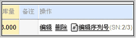 执行后,提示您“序列号删除成功”。 这时再次进入序列号编辑,新增正确的序列号即可。 需要重点提醒您注意的是:在这个界面中使用删除时,所填写的序列号必须是左侧窗口中存在的号码,否则将提示您:没有找到序列号【XXX】,请核对。 关于编辑序列号后面的数字提示 在编辑序列号操作链接后面,可看到比如下图中(SN:2/3)的数字: