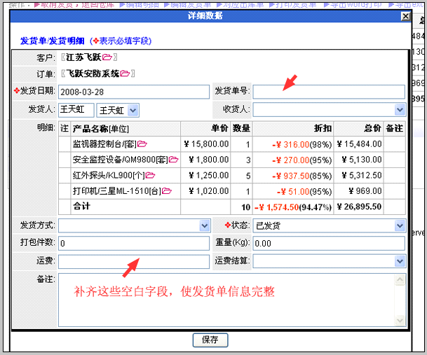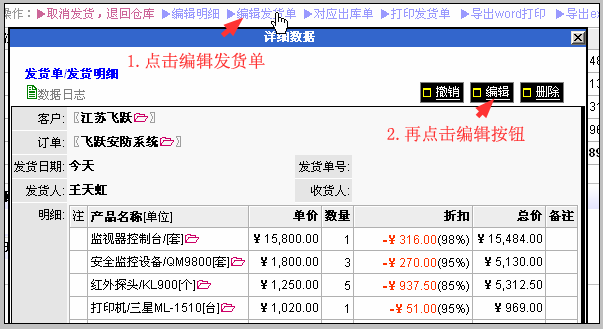 点击编辑发货单,在弹出的详细数据界面,点击编辑按钮