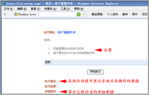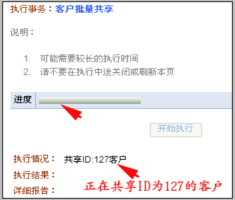 批量共享和转移的执行界面