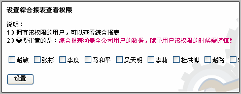 请注意:综合报表数据涉及全公司,在赋予权限时请谨慎。被选中的用户有权限查看综合报表。