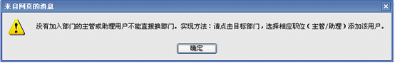 择公司根部门下的主管或助理级别用户,点击换部门,会出现如下提示: