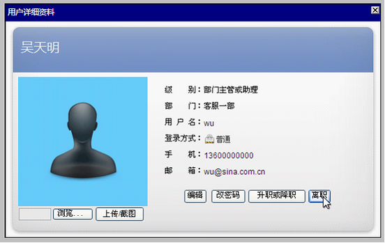 为满足以上几点要求,XToolsCRM加入了“离职”功能。