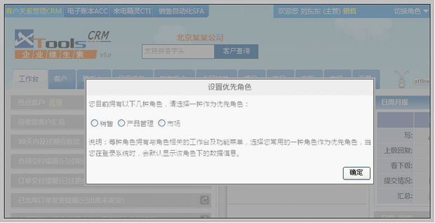 用户在首次登录进入5.0系统时,系统首先会提示用户设置优先角色。如下图: