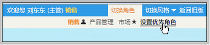 在后续使用中,若您的工作重点发生转变,您仍可以重新设置优先角色。 在系统右上角切换角色功能处,点击“设置优先角色”,如下图:
